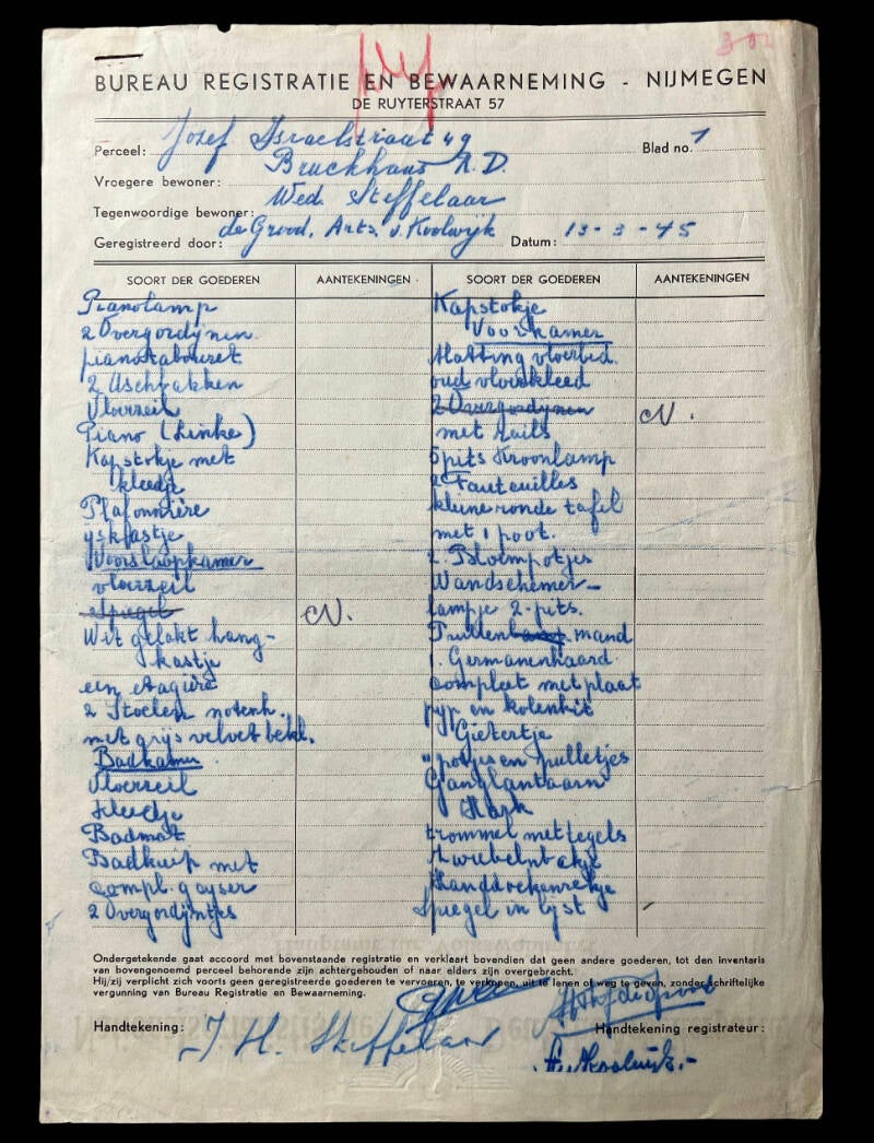 Oorkonde Luchtbeschermingsdienst Nijmegen