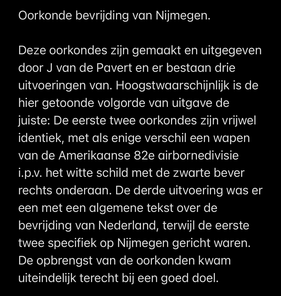Oorkonde bevrijding van Nijmegen