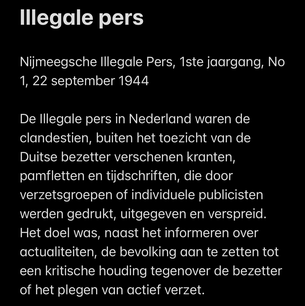 Nijmeegsche Illegale Pers 1ste jaargang No 1, 22 september 1944
