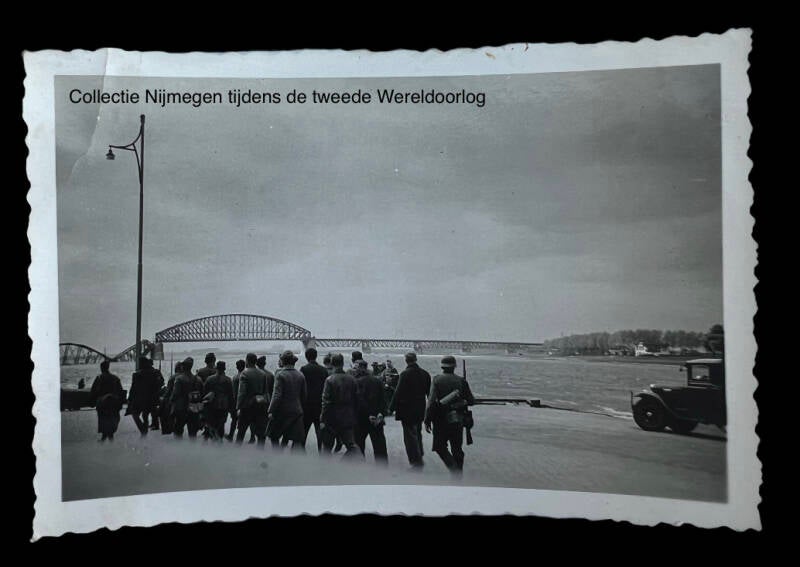 Marcherende duitse soldaten op de Waalkade