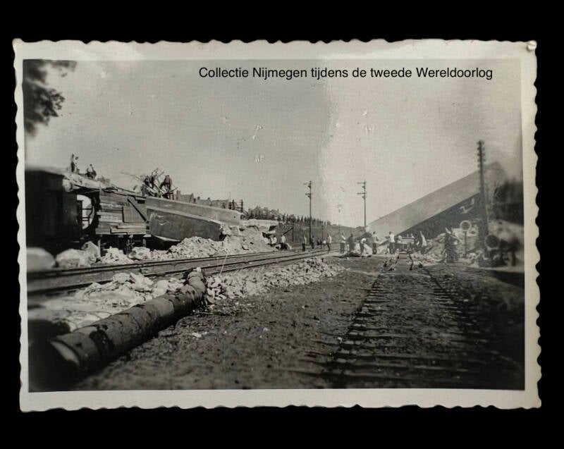 Noodbrug tussen de gesprongen waalbrug/spoorbrug